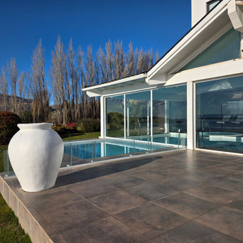 Piscina de 70 m² con temperatura entre 28 y 32 °C y vistas al Lago Argentino. -